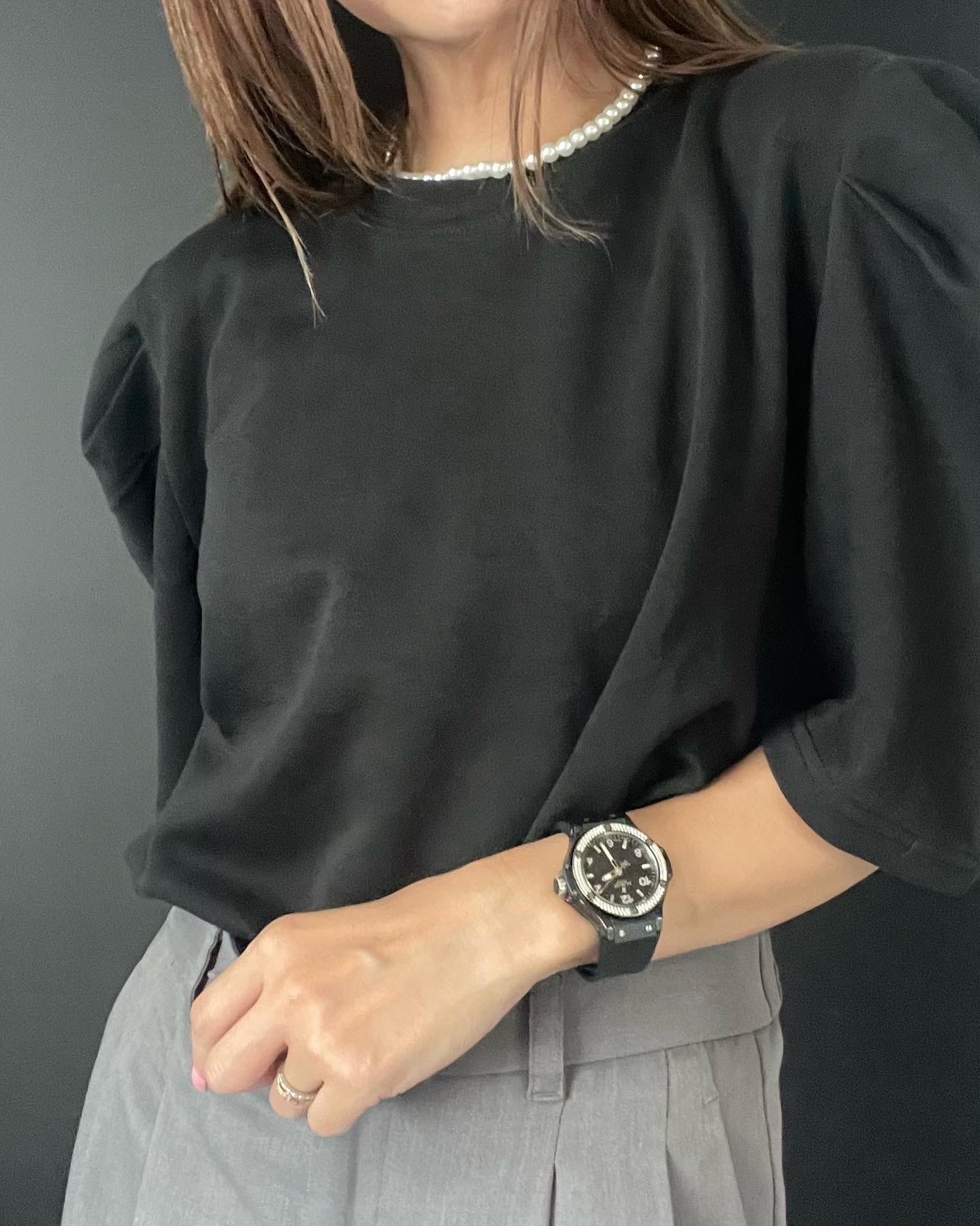 volume puff sleeve tops(black)